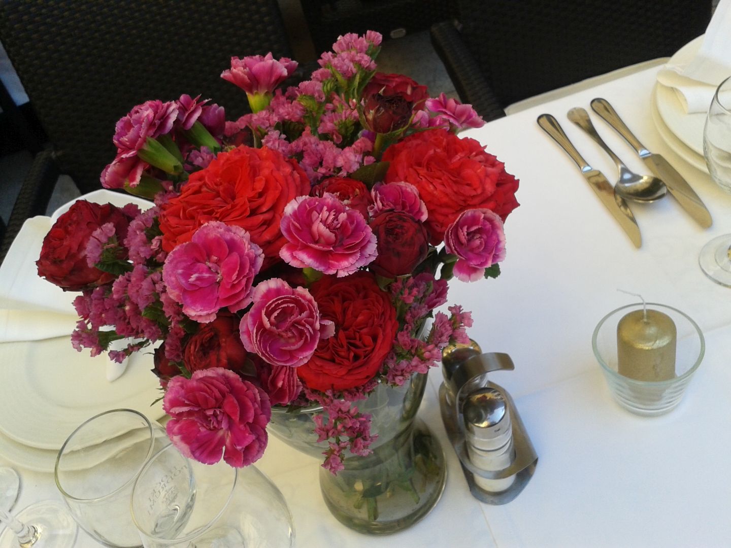 (vaza manja, mini karanfili,domaće ruže,statice)